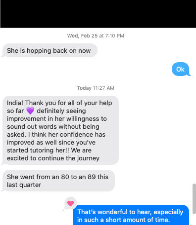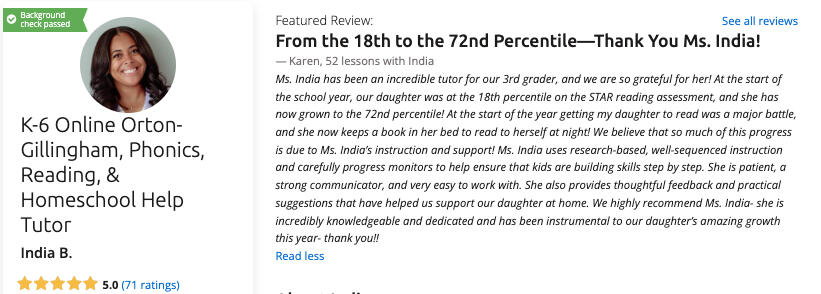 Getting started with Miss India is simple. Whether your child needs help with Reading Comprehension, Phonics, Homeschool Support, or a combination of them all, I make the process easy as ABC!